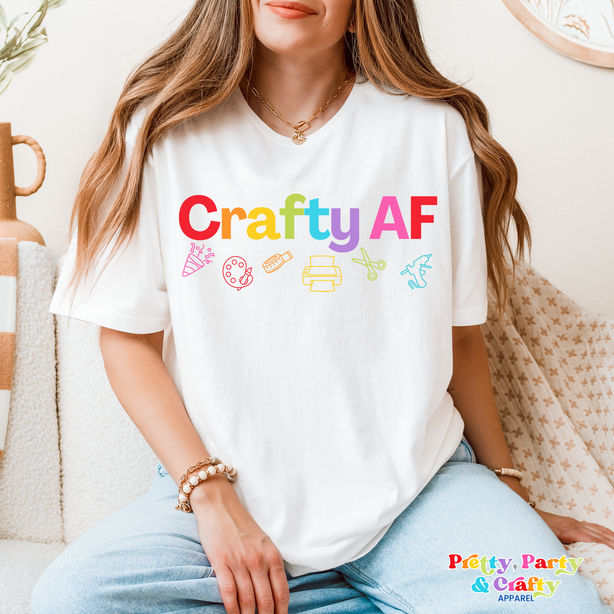 Crafting is not a hobby. It is a lifestyle. This Crafty AF shirt is a soft, lightweight tee designed for makers who love creating, customizing, and doing the most. With a colorful design that celebrates crafting tools and creativity, it is perfect for wearing while crafting, filming content, or showing off your maker energy wherever you go.